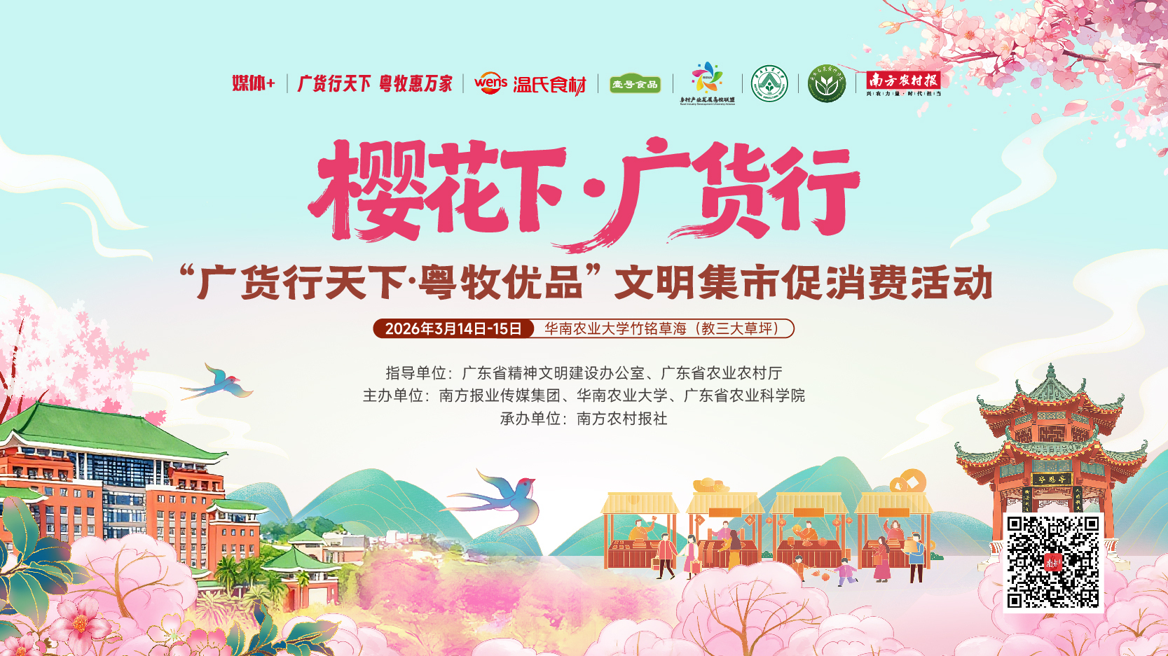 带话题 #樱花树下办集市 #“广货行天下·粤牧优品”细腻集市促消耗行动。