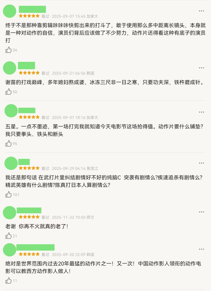 大部分好评,也皆是围绕拳拳到肉的打戏张开。