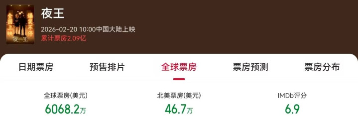 春节档电影《夜王》的起跑时辰,天然比其他影片慢一些,但票房少量没少赚。