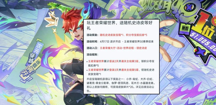 具体参考上图,即是游玩王者寰球,累计登录达到3天并通过干线5章后,不错获得积分夺宝券*5、立时史诗皮肤礼包*1,相称于给了咱们白嫖史诗的契机。