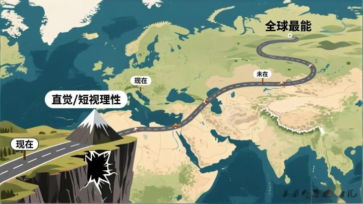从信息几何角度看,直觉思维沿着认知流形的局部梯度下降方向前进;理性思维能探索更广泛的可能性空间;而智慧思维则能识别出那些可能导向系统崩溃(流形奇点)的路径,并主动避开。这需要整合来自多维度、多时间尺度的信息,形成更高阶的表征。