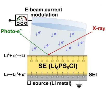 图3 原位 XPS 测量构型示意:X 射线激发产生光电子,光电子在真空中被能量分析器收集。DOI:10.1038/s41467-022-34855-9