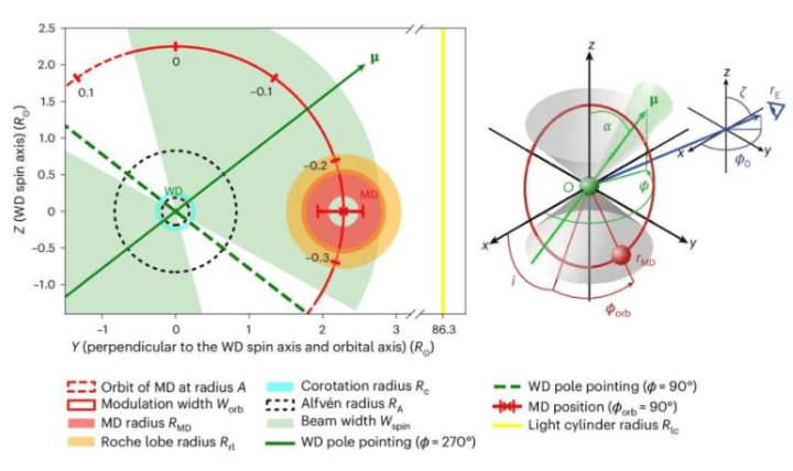 研究进一步构建模型,表明白矮星的磁极在扫过伴星恒星风时可产生射电波束,其脉冲模式与观测数据高度吻合。这一发现为理解长周期瞬变源的物理机制提供了新框架,并可能成为连接经典白矮星脉冲星与这类长周期信号之间的关键环节。