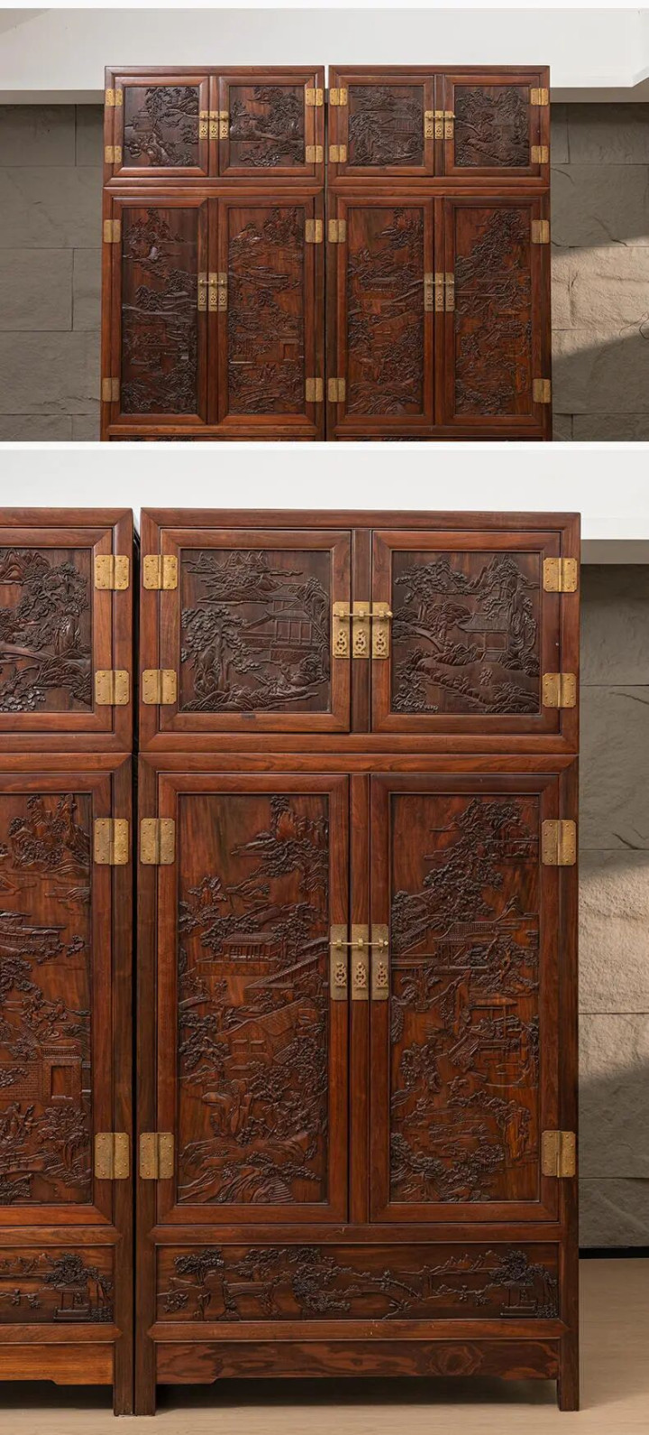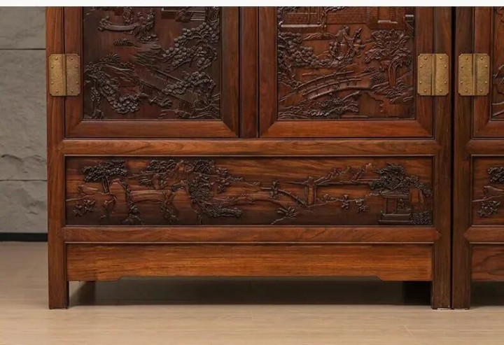 清 红木高浮雕东说念主物故事四件柜