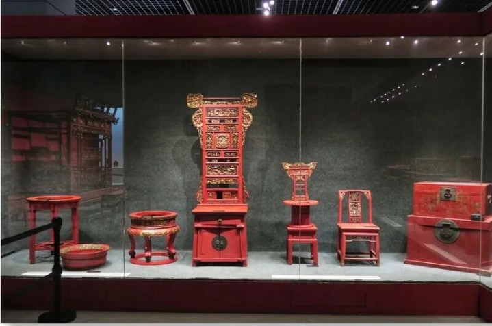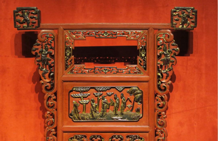 除了单一的朱漆,浙东地区也常用朱金木雕、泥金彩漆等工艺,金红交相衬映,一片红火之色。