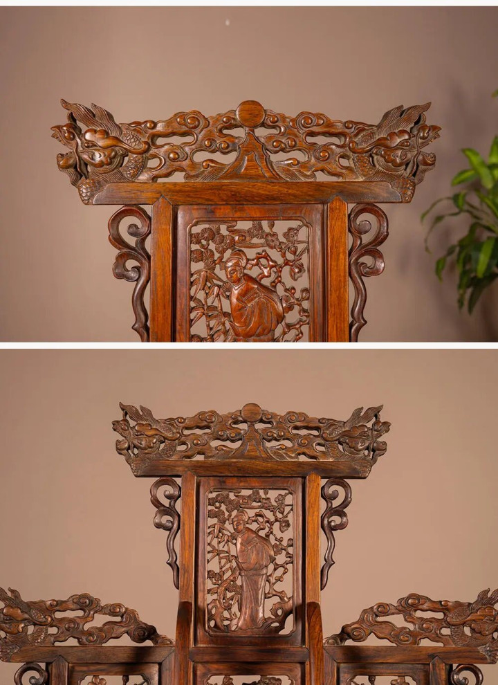 更繁复的镜台造型雷吞并个小座屏,比赛下注有屏风和围子,屏心多作透雕。屏风式的镜台造型有一个基本特征,即围子顶部两头都偏好作翘头,翘头龙纹、灵芝纹、麒麟纹等等,举座形似宝座,相当雍容。