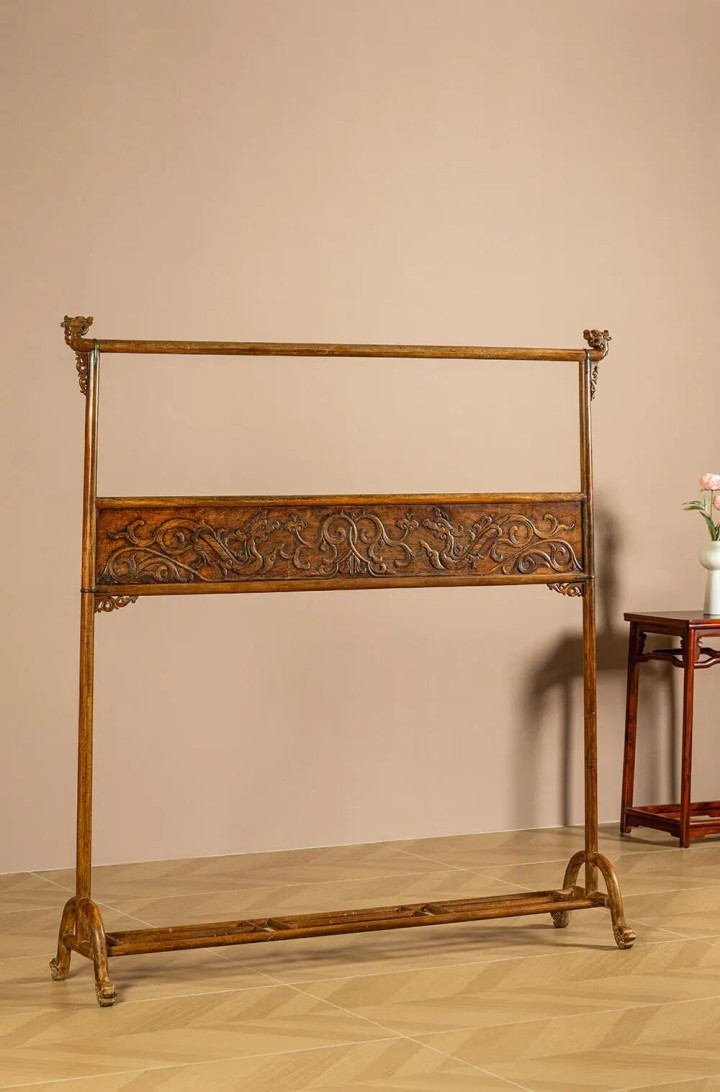 清晨期 黄花梨螭龙纹中牌子衣架