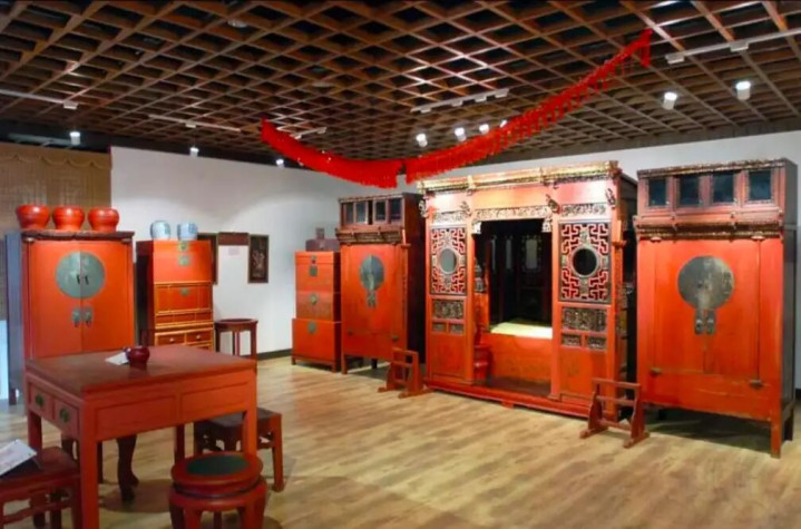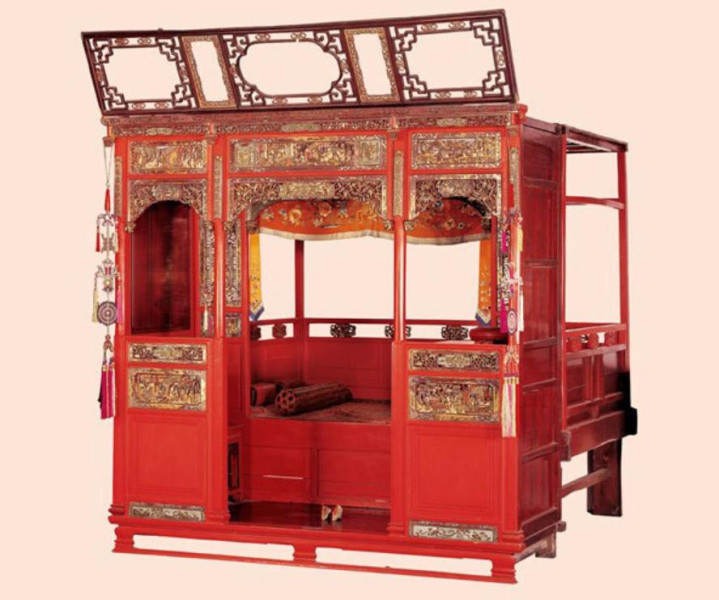 由于软木易腐蚀,是以“十里红妆”,指的就是髹朱漆。朱红是婚嫁的镇定之色,象征着喜庆、镇定、强烈,漆面光滑亮堂,尽显喜庆在意。