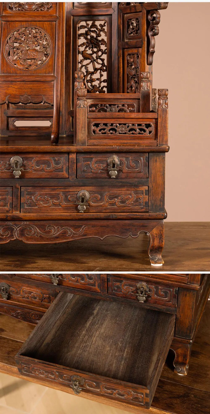 暗仓指的是顶箱柜柜子底下的一个小抽屉,因为身处最底部,是柜类居品的暗门,是以称作“暗仓”,足见其阴私性。