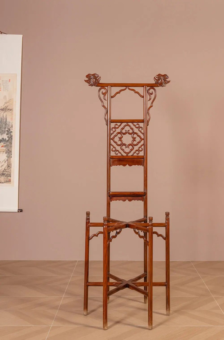 清 黄花梨四合如意中牌子六足高面盆架