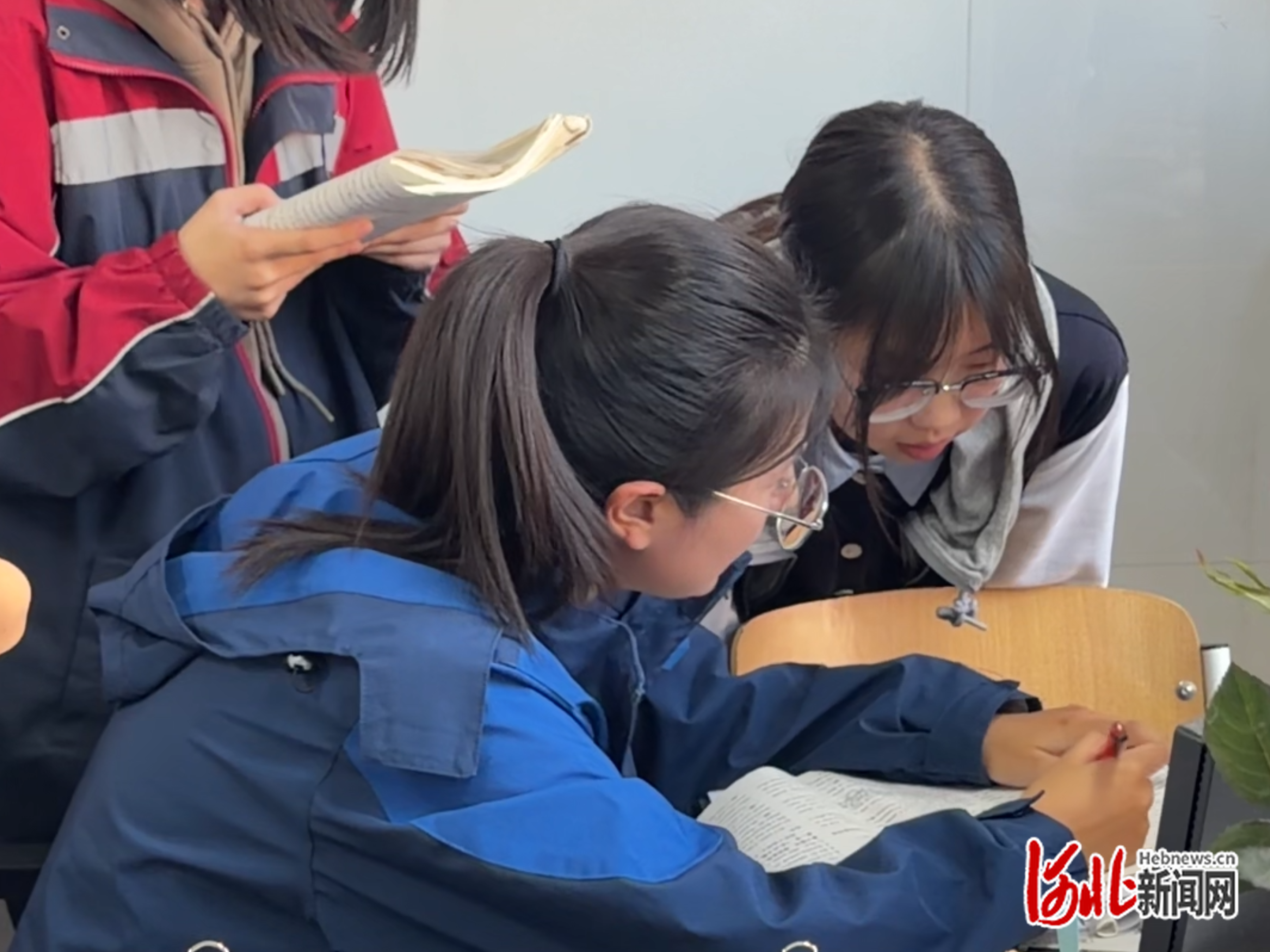 刘若寒丰驾驭课后帮同学们解答难题。保定市宏利佳高档中学供图