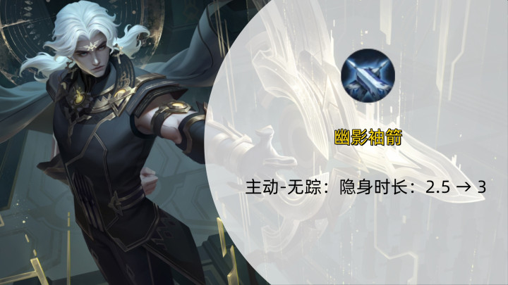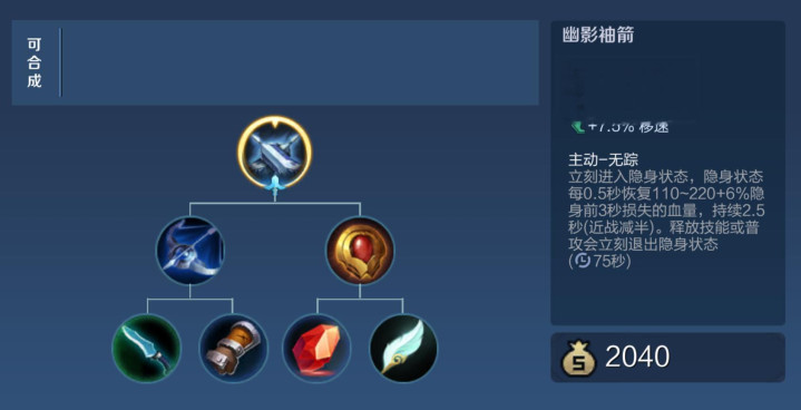 它的优点在于不错隐身和回血,给弓手提供一个反制突进型勇士的契机,4月10日诞生了延伸隐身和红BUFF破隐的问题后,幽影袖箭仿佛好用了少许点。